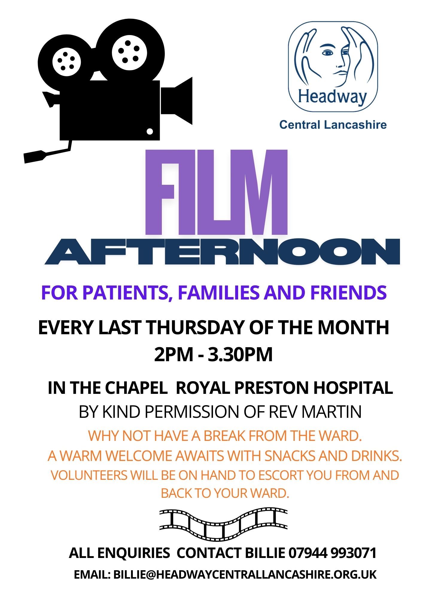 We are holding film afternoons at the Royal Preston Hospital for long stay patients and their families and friends.